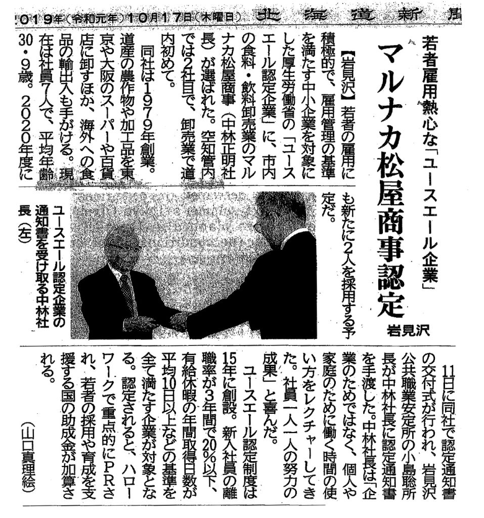 Newsユースエール認定企業に7年連続で選ばれました。